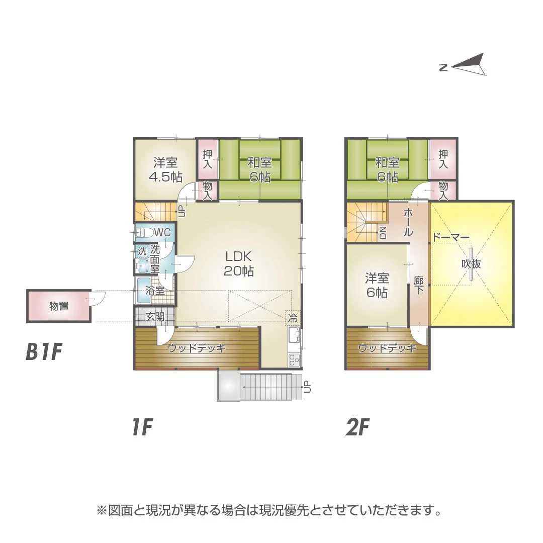 2階はリビングと吹抜で繋がった9.2帖の洋室とドーマー付きの6.9帖の洋室があり、両側にバルコニーが付いています。
