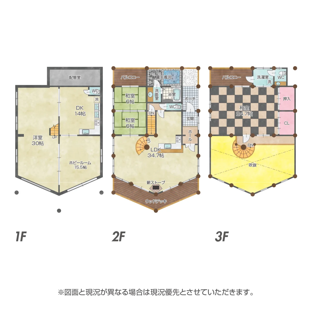 3階には24.7帖の広々とした和室があり、ゆったりとした時間を過ごせます。