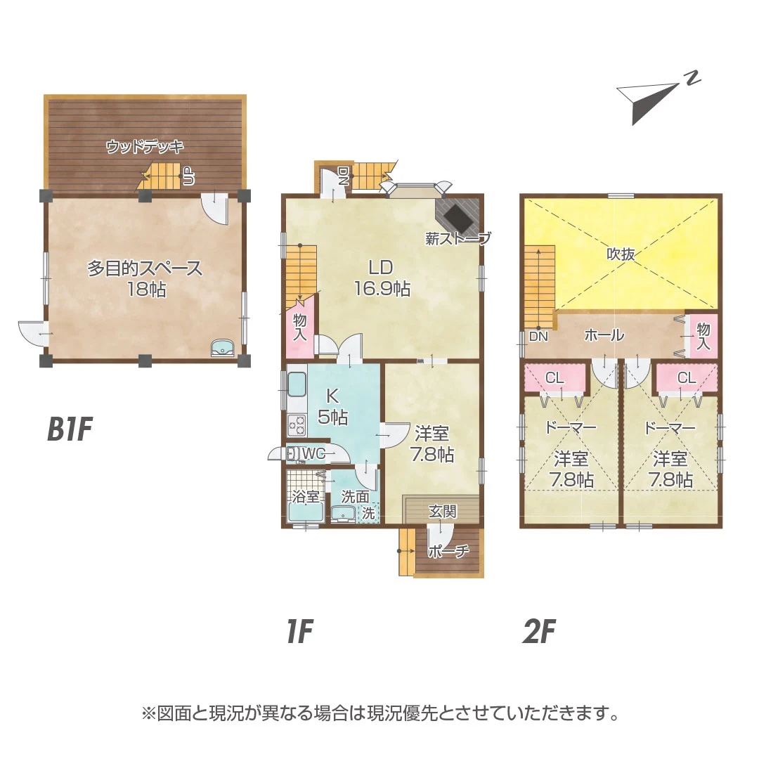 建物は存在感ある3階建てで、延床面積は約110㎡、間取りはゆとりある4LDK+ロフト。