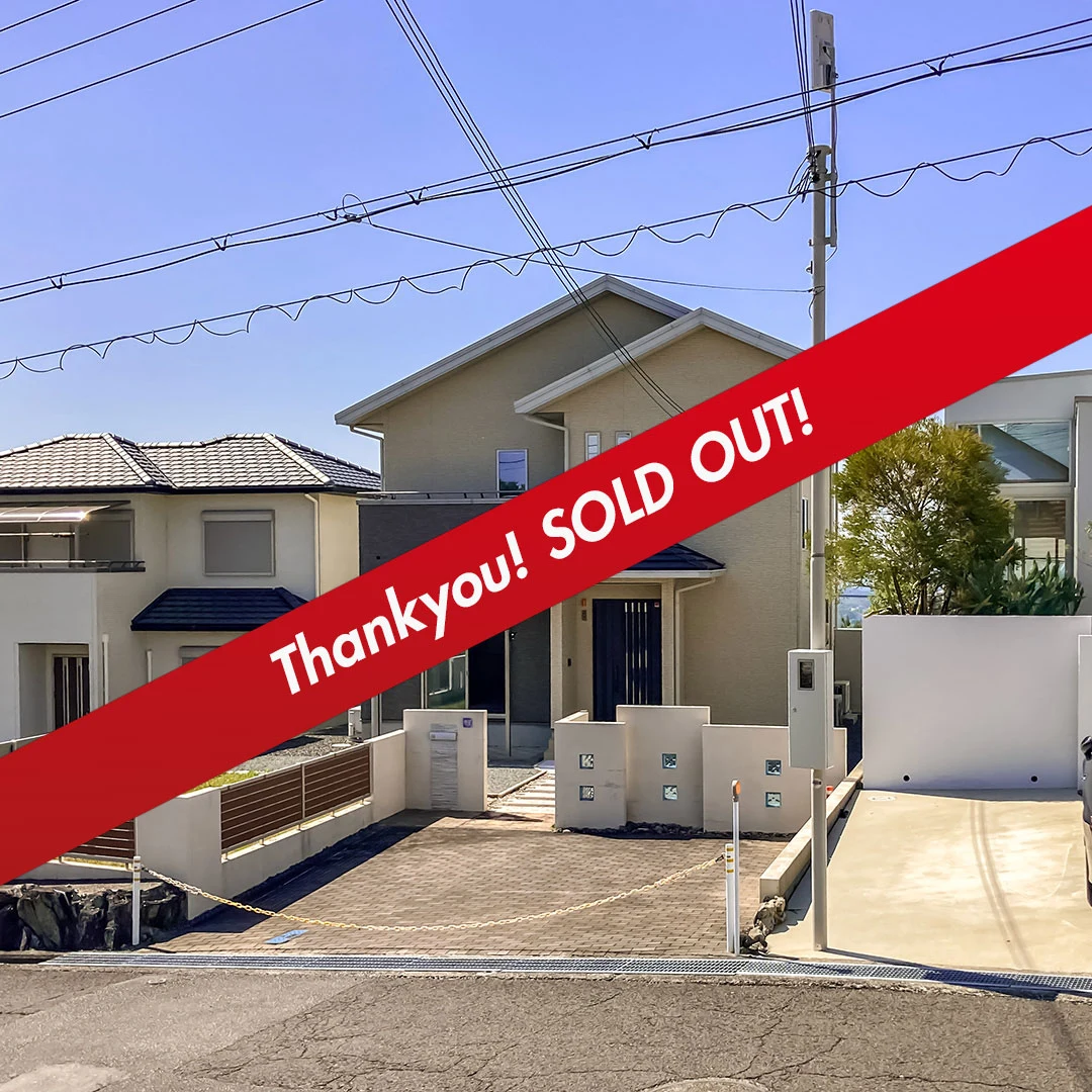 ニュータウンの一番高い場所に建っており2階バルコニーからは抜けのいい景色が広がり遠くに少しだけ海も見えています。