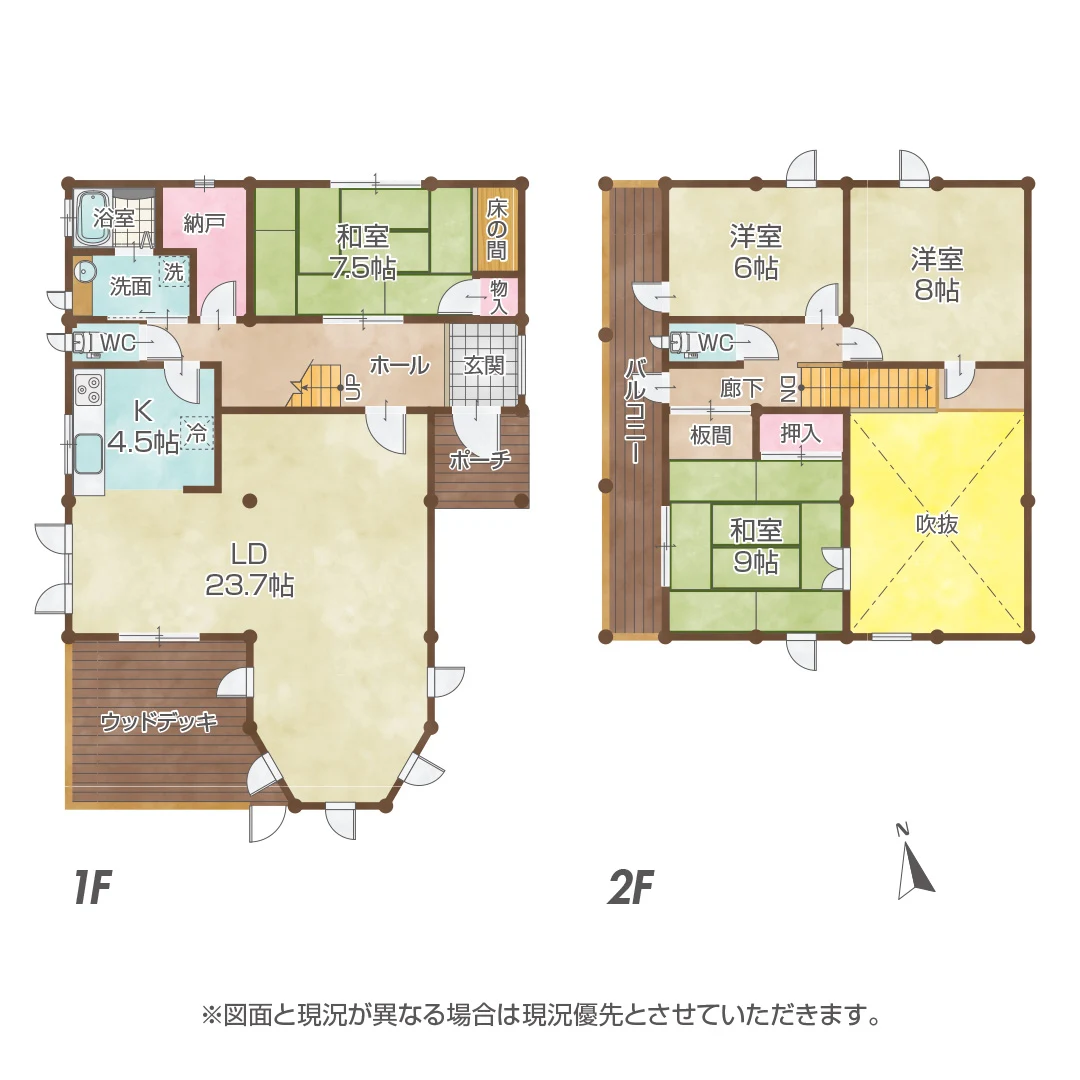 4.5帖のキッチンも広くて使い勝手が良く、さらに7.5帖の和室もあり客間やくつろぎスペースとしても重宝します。