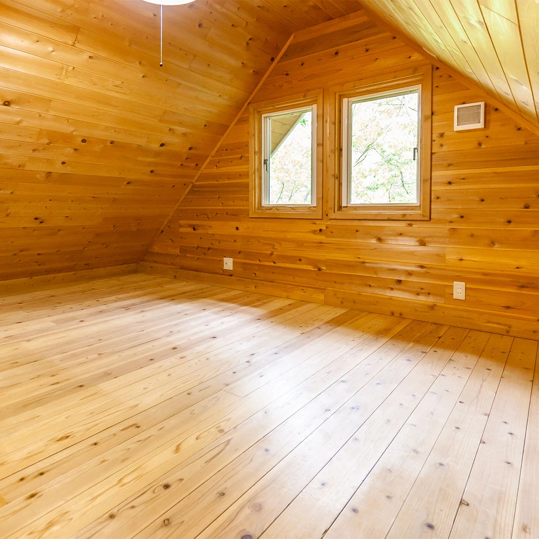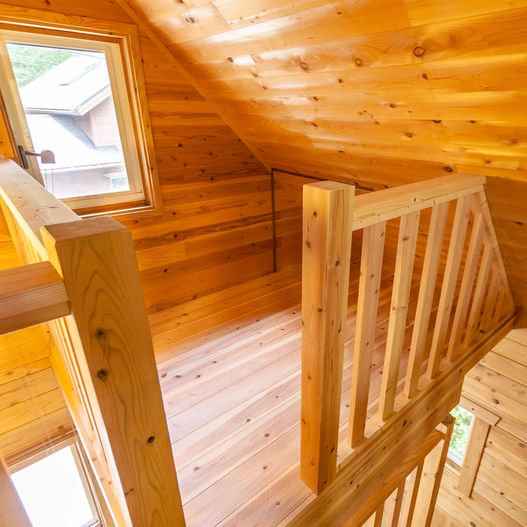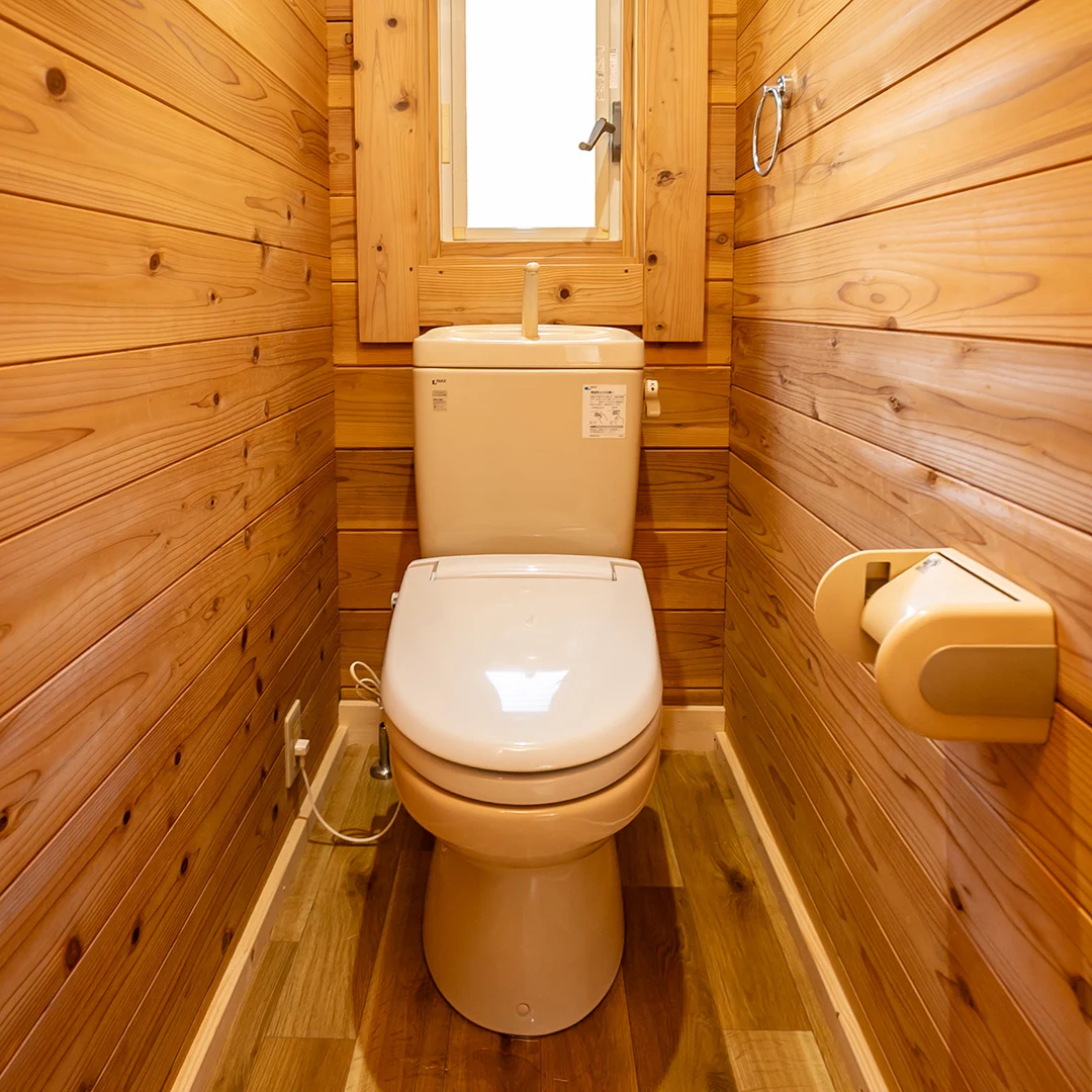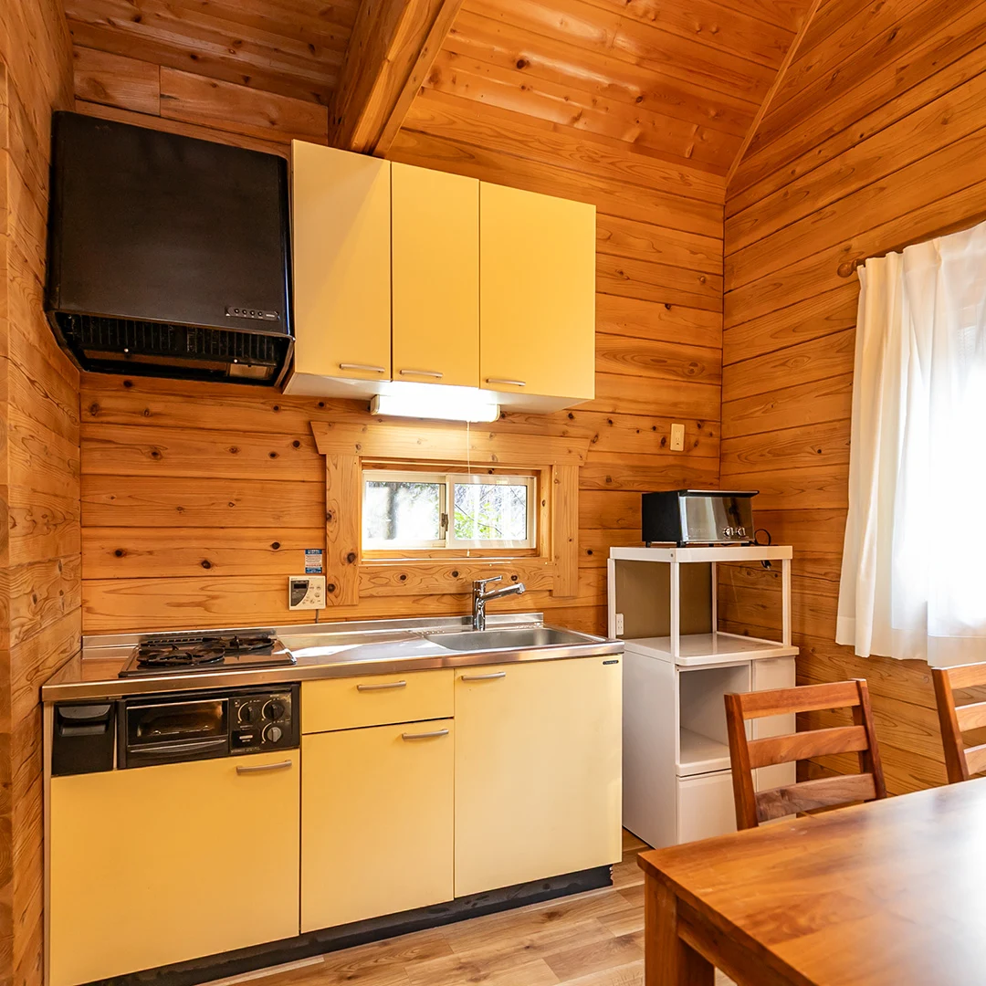 ログハウスならではの木材をふんだんに使用した室内は、落ち着きのある居心地の良い空間となっています。