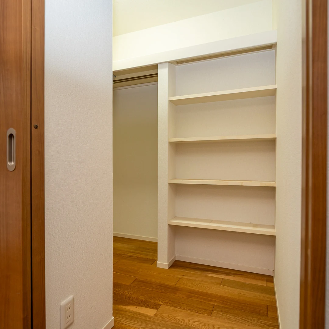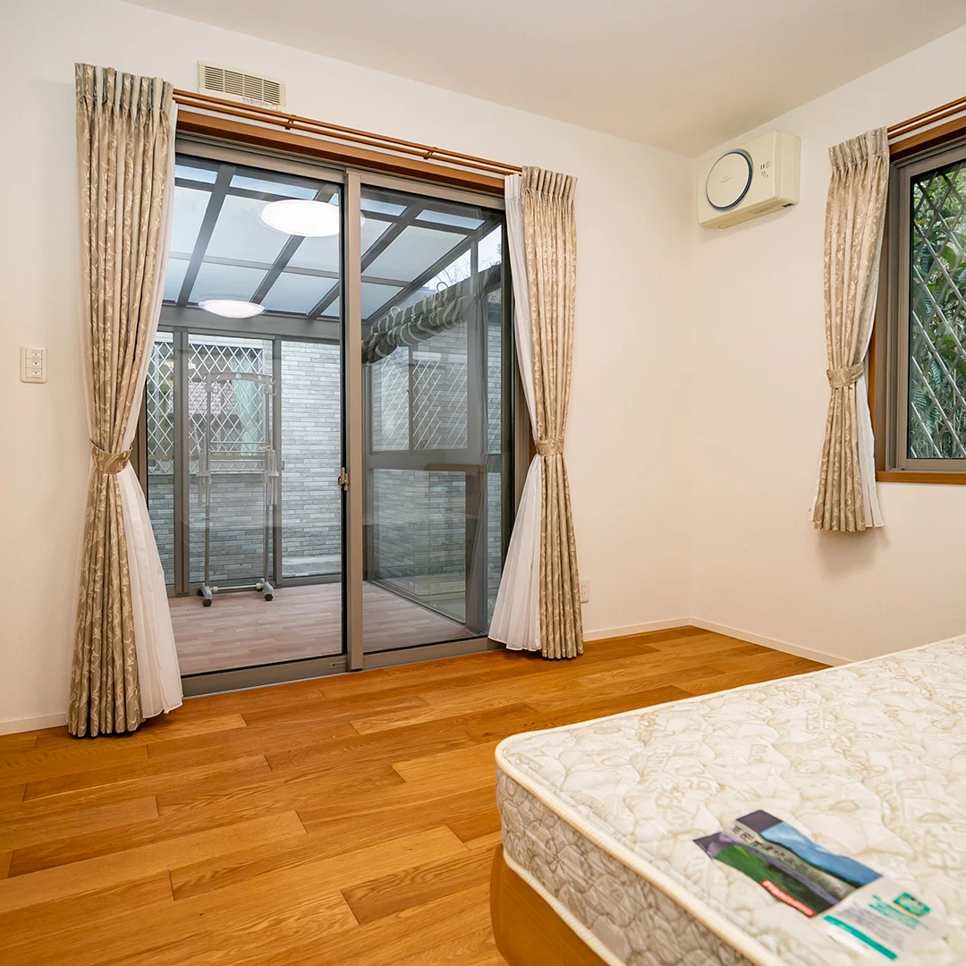 11帖の洋室にはウォークインクローゼットとサンルームが備わっており、採光・収納ともに充実。