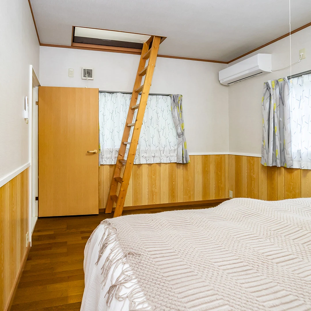 3階には5帖の洋室と7.5帖の寝室があり、寝室から収納階段を使って屋根裏に上がることができます。