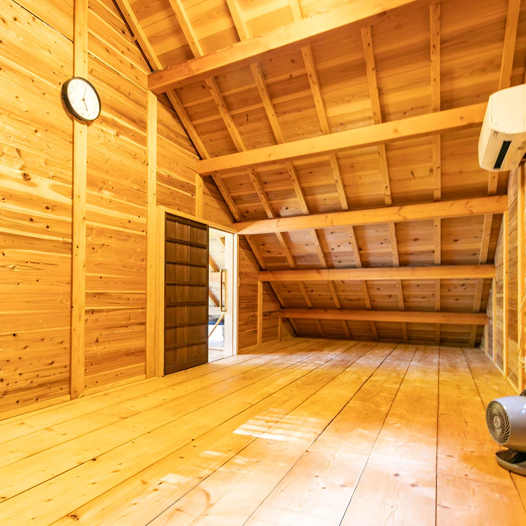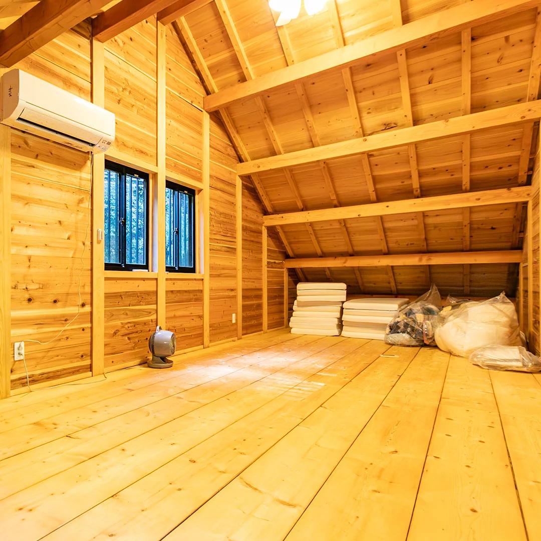 2階は18帖の洋室となっており、寝室やゲストルーム、または趣味部屋としても活用可能。