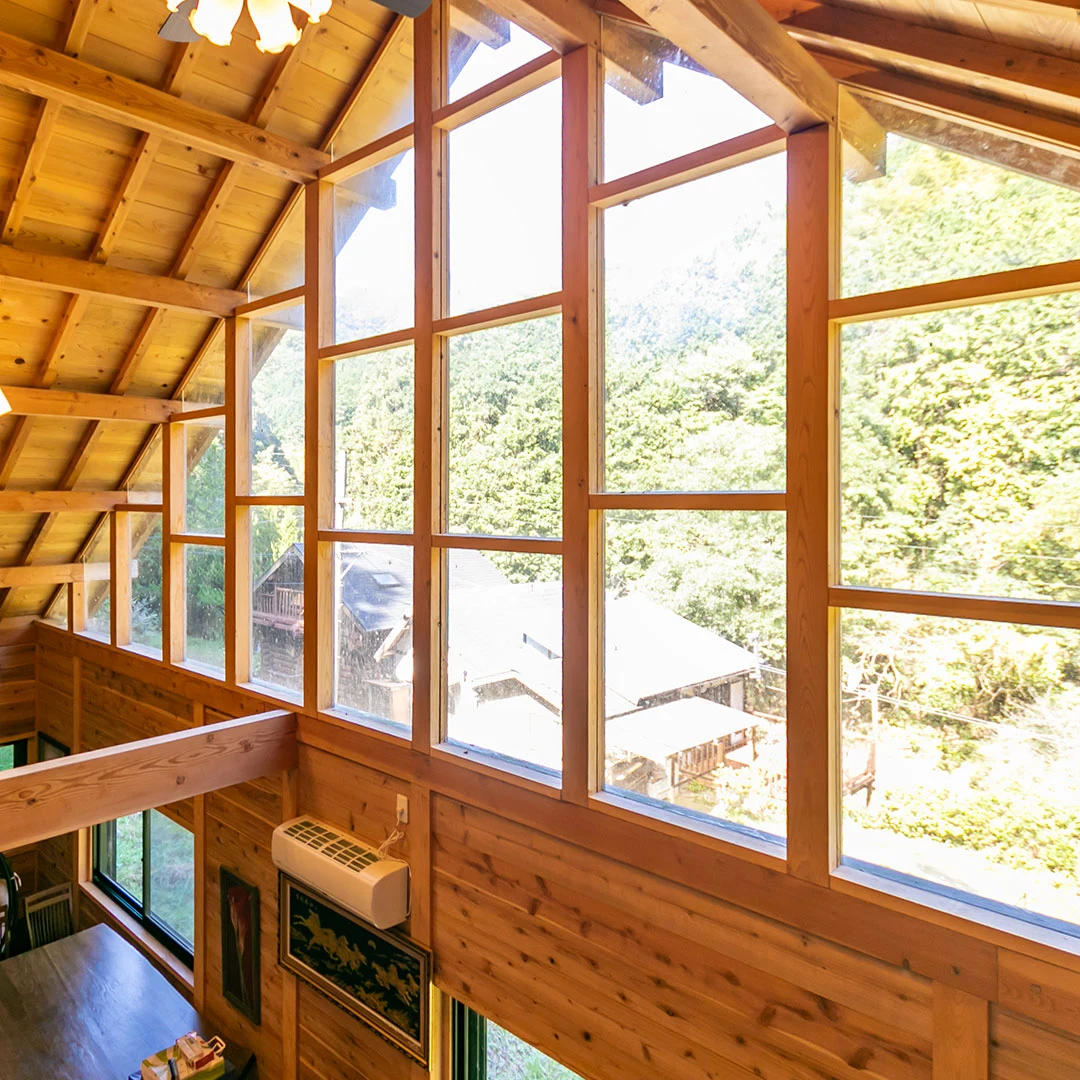 木のぬくもりを感じるデザインで、四季折々の景色を眺めながらゆったりと過ごせる空間です。