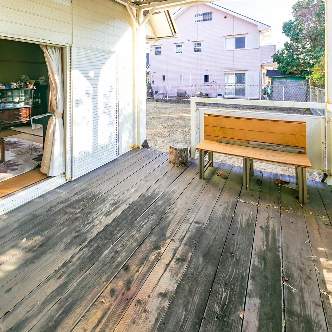 1階・2階の両方にウッドデッキがあり、2階からは海を少し望むことができます。
