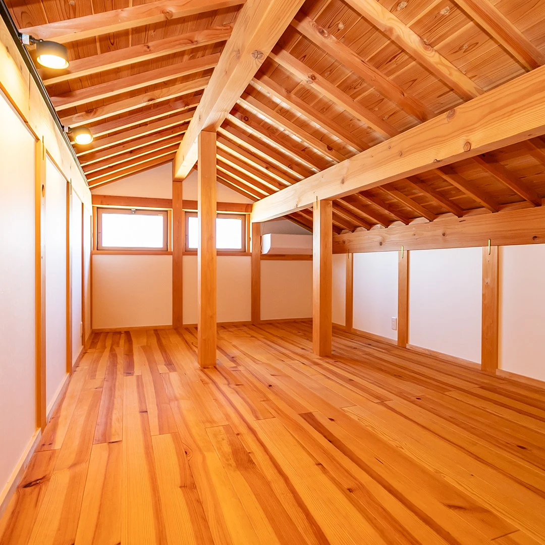 また、屋根裏には広々とした空間を確保しており、収納や趣味部屋としても活躍。暮らしに“もうひとつの余白”を与えてくれます。