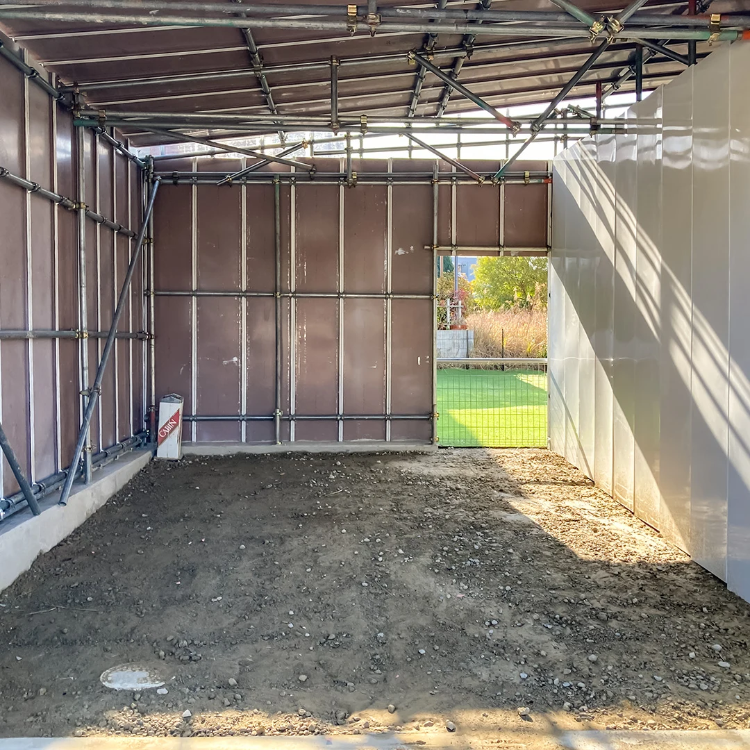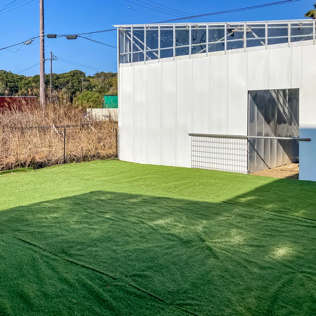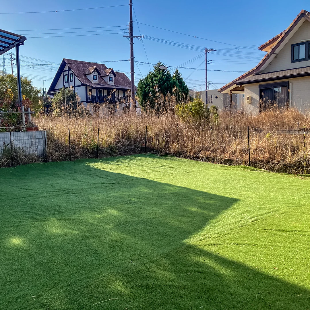 こちらにはガレージとドッグランがあり、愛犬とのびのび過ごしたり、家庭菜園としても活用可能です。