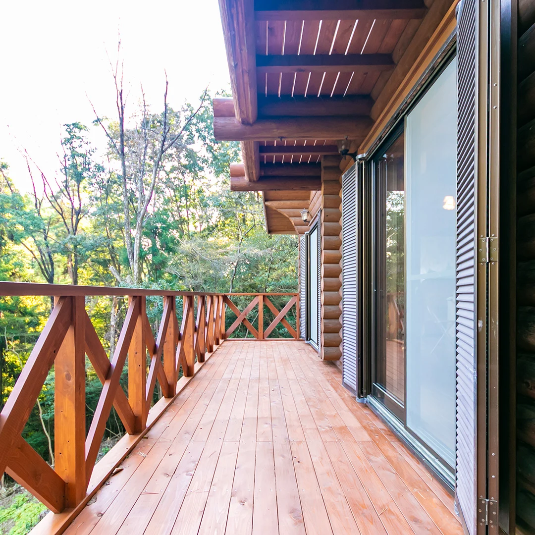 周辺には山々が広がり、バルコニーからは雄大な景色が目の前に広がります。